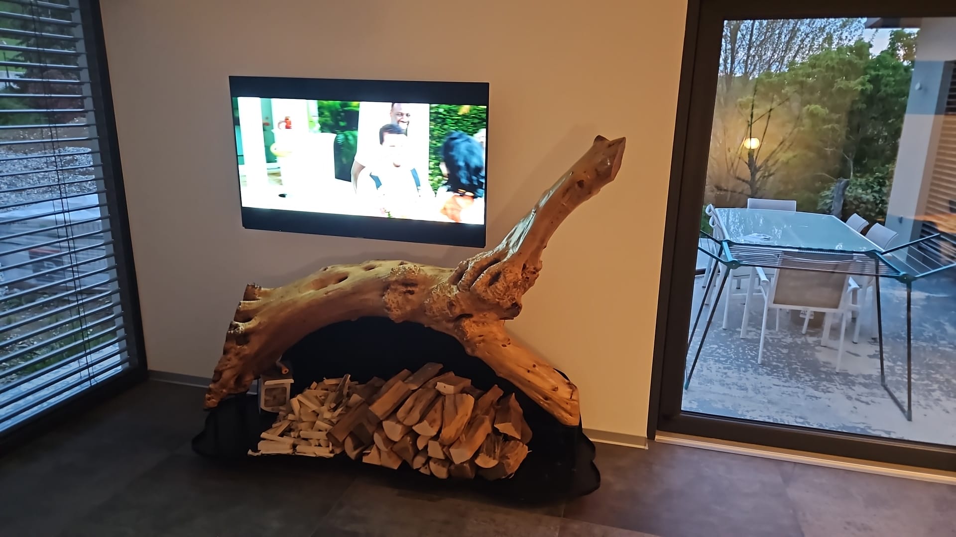 Stahlfuss aus Ketten für Treibholzstamm