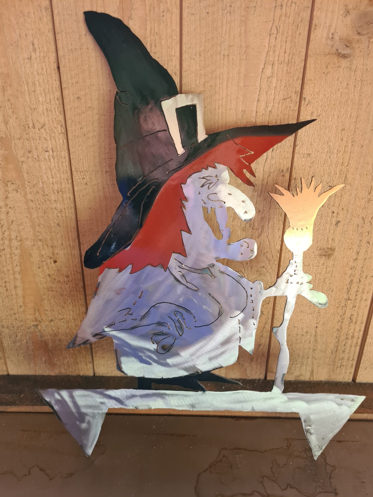 "Der Kleine" gibt es in verschiedenen Varianten. Mit geradem oder bearbeitetem Blech, mit Stangen oder gar mit einer Öllampe im Fuss. Der Preis ist CHF 200.- (mit Öllampe CHF 250.-).