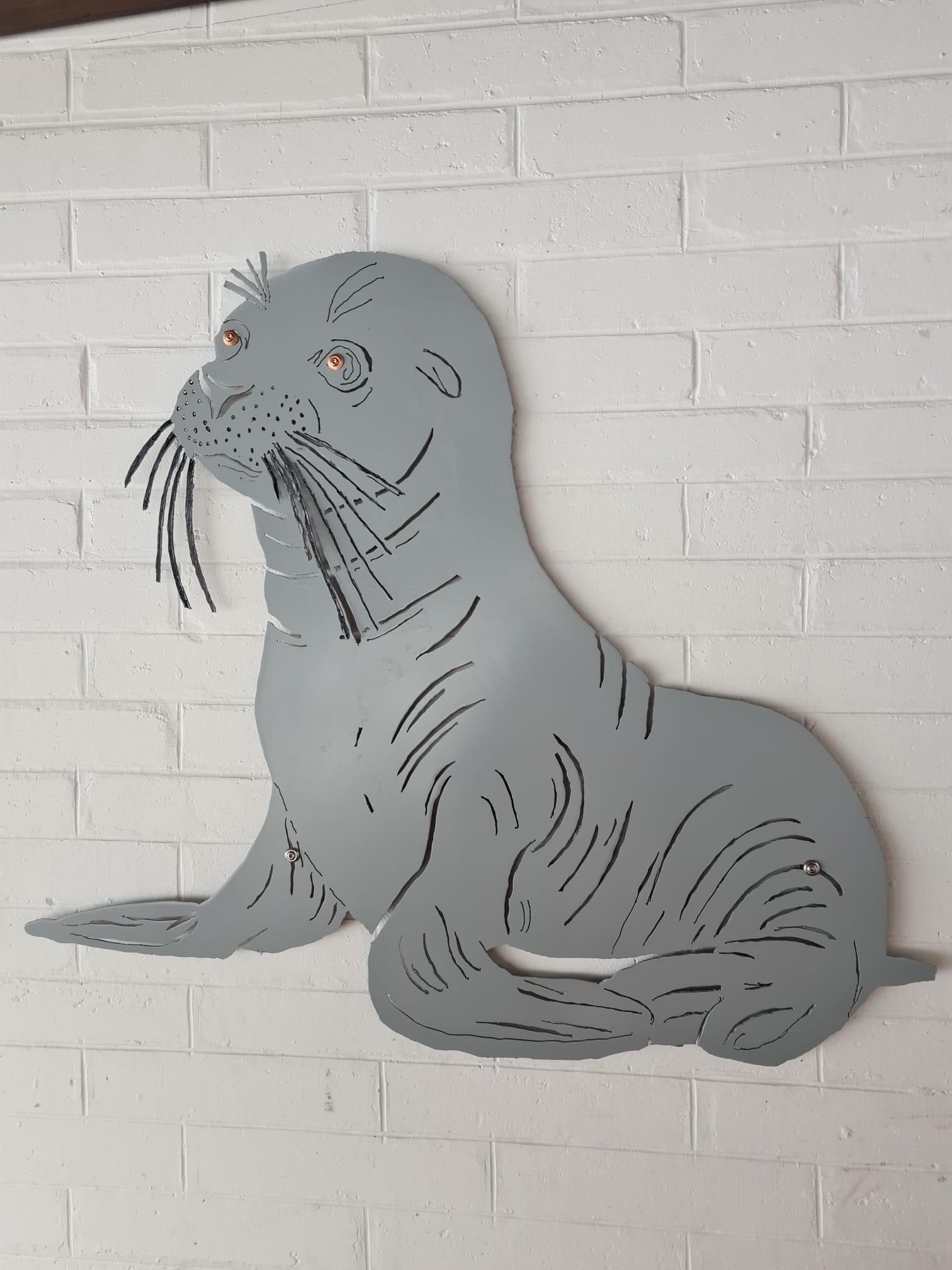 Der ausgeschweisste Löwenkopf oder Tigerkopf wird inklusive Befestigung ausgeliefert. So wird er zum ganz speziellen Wandbild (CHF 200.-). Optional kann er mit einer Holzplatte (CHF 250.-) oder einer gestrichenen Platte (CHF 300.-) oder gar mit einer LED-Beleuchtung bestellt werden (CHF 350.-). Der Löwenkopf ist ca. 77x69 cm, der Tigerkopf ca. 45x45 cm.